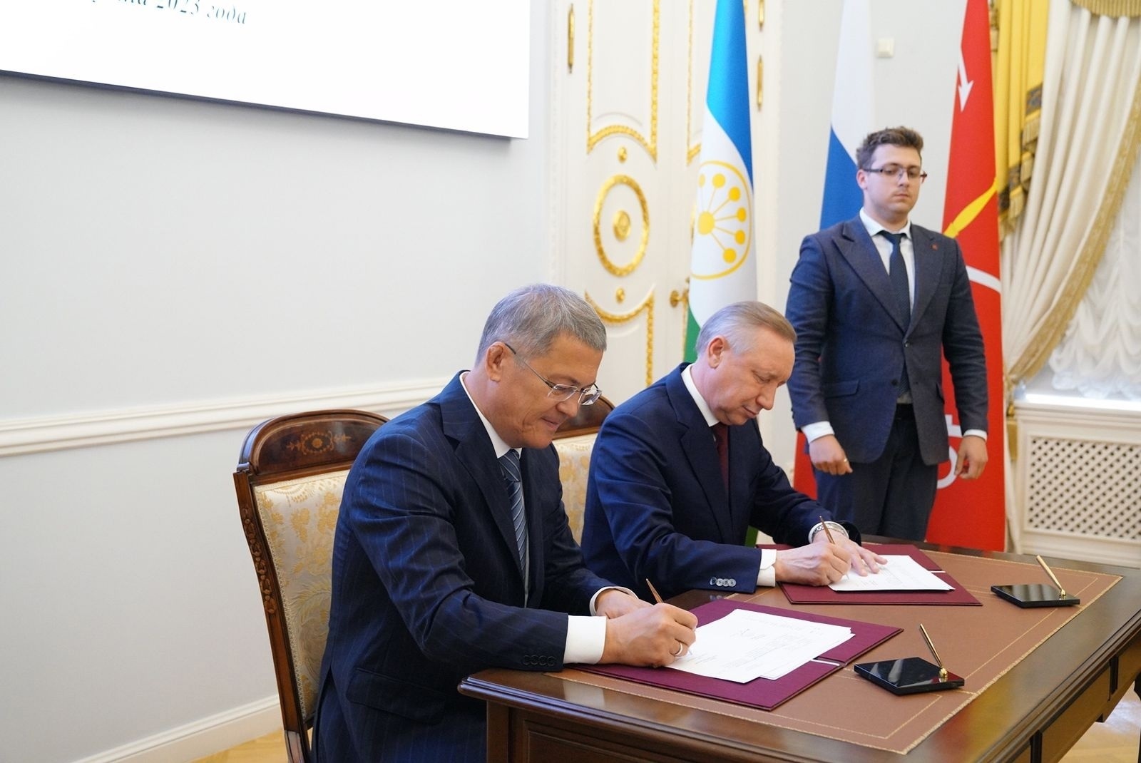 Радий Хабиров подчеркнул, что Санкт-Петербург и Башкирию связывает крепкая дружба, которая уходит в глубь истории. У регионов тесные связи в области экономики, культуры, туризма, спорта, здравоохранения, науки и других сферах. «Пользуясь случаем, пригласил Александра Дмитриевича и его команду в следующем году на юбилей Уфы», - отметил руководитель республики.