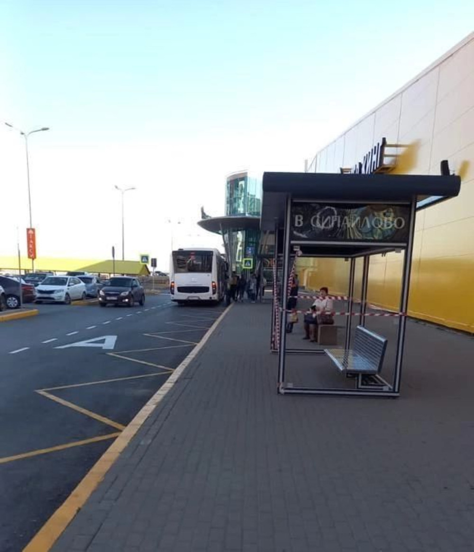 На территории торгового центра установили остановочный павильон, светофор, обустроили заездной карман для автобусов, нанесли соответствующую дорожную разметку, установили дорожные знаки.
