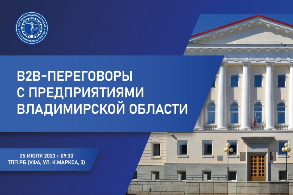 Торгово-промышленная палата РБ принимает бизнес-миссию предприятий Владимирской области. Визит делегации в Башкортостан пройдет с 24 по 26 июля. Представители бизнеса Владимирской области познакомятся с экономическим потенциалом республики, проведут переговоры, посетят памятники природы региона.