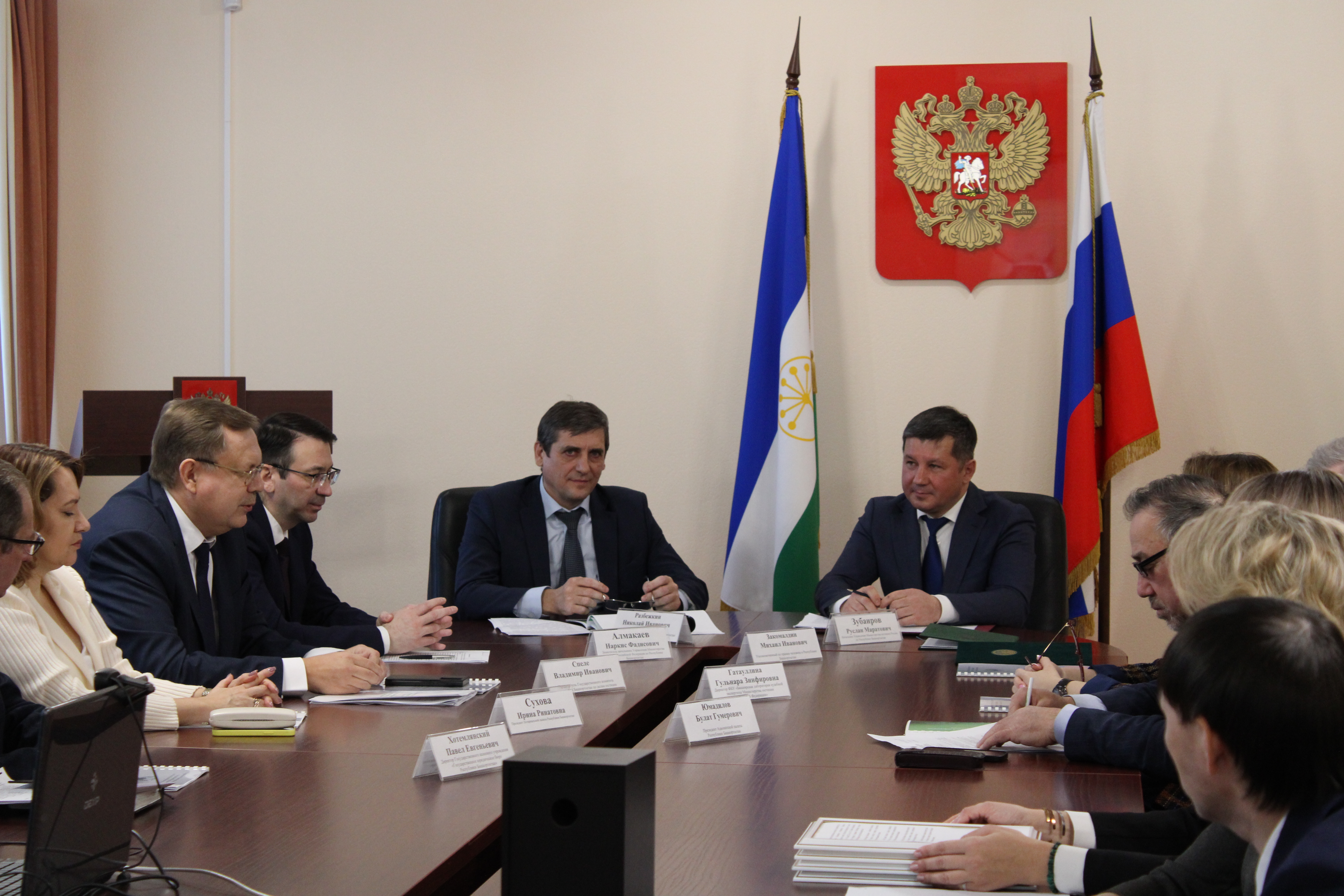 В совещании приняли участие федеральный инспектор по Республике Башкортостан Николай Разбежкин, Уполномоченный по правам человека в Республике Башкортостан Михаил Закомалдин, директор ФБУ «Башкирская лаборатория судебной экспертизы Министерства юстиции Российской Федерации» Гульнара Гатауллина, председатель Государственного комитета Республики Башкортостан по делам юстиции Владимир Спеле, директор Государственного казенного учреждения «Государственное юридическое бюро Республики Башкортостан» Павел Хотемлянский, руководители Адвокатской и Нотариальной палат Республики Башкортостан Булат Юмадилов и Ирина Сухова.