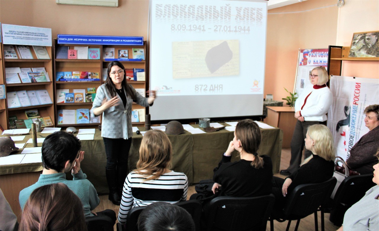 - Елена Вязовцева совместно с Музеем боевой славы предоставили нам артефакты с мест боевого сражения. Наши читатели-инвалиды по зрению впервые прикоснулись к артефактам войны. Мы адаптировали эти экспонаты для наших незрячих посетителей - маркировали их шрифтом Брайля, а для слабовидящих – подписали крупным шрифтом. Мы также описывали "горячим тифлокомментированием" каждый предмет, который изучали экскурсанты. Было очень волнительно. Ещё одна уникальность нашего мероприятия в том, что на выставку были приглашены инвалиды по слуху. Презентация сопровождалась сурдопереводом. Мы рассказали об истории Блокады Ленинграда. На экране демонстрировали фотографии с событий того времени. Получилось такое цельное мероприятие для инвалидов по зрению и по слуху. Само понятие "Блокадный хлеб", которое носит название выставки, означает жизнь, ведь тот маленький кусок хлеба, который выдавали людям помогал им выжить. Всё это мы хотели донести до наших читателей. Эта выставка должна обязательно демонстрироваться инвалидам по зрению, поэтому подумаем, где её ещё можно будет показать, - рассказала директор Специальной библиотеки для слепых им. М. Тухватшина Айгуль Аминева.