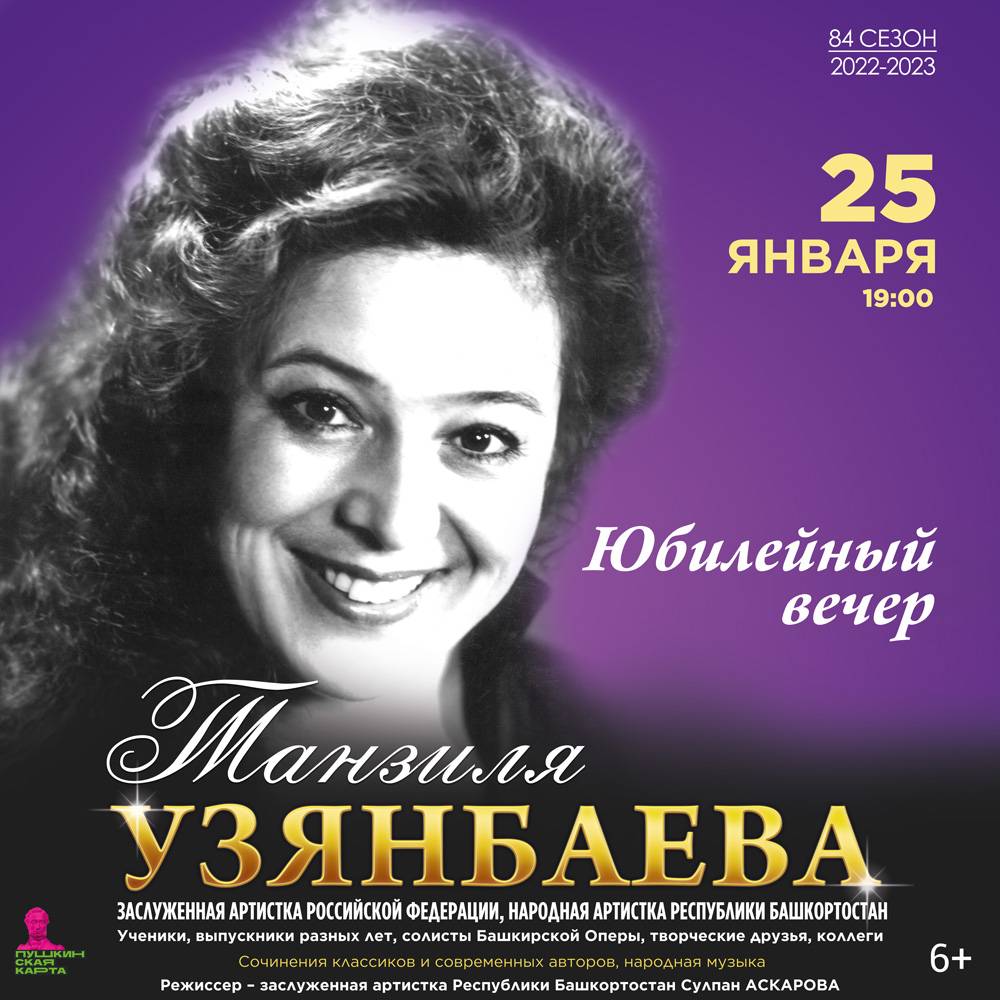25 января в Малом зале Башкирской государственной филармонии состоится юбилейный вечер заслуженной артистки России, народной артистки Башкортостана Танзили Узянбаевой.