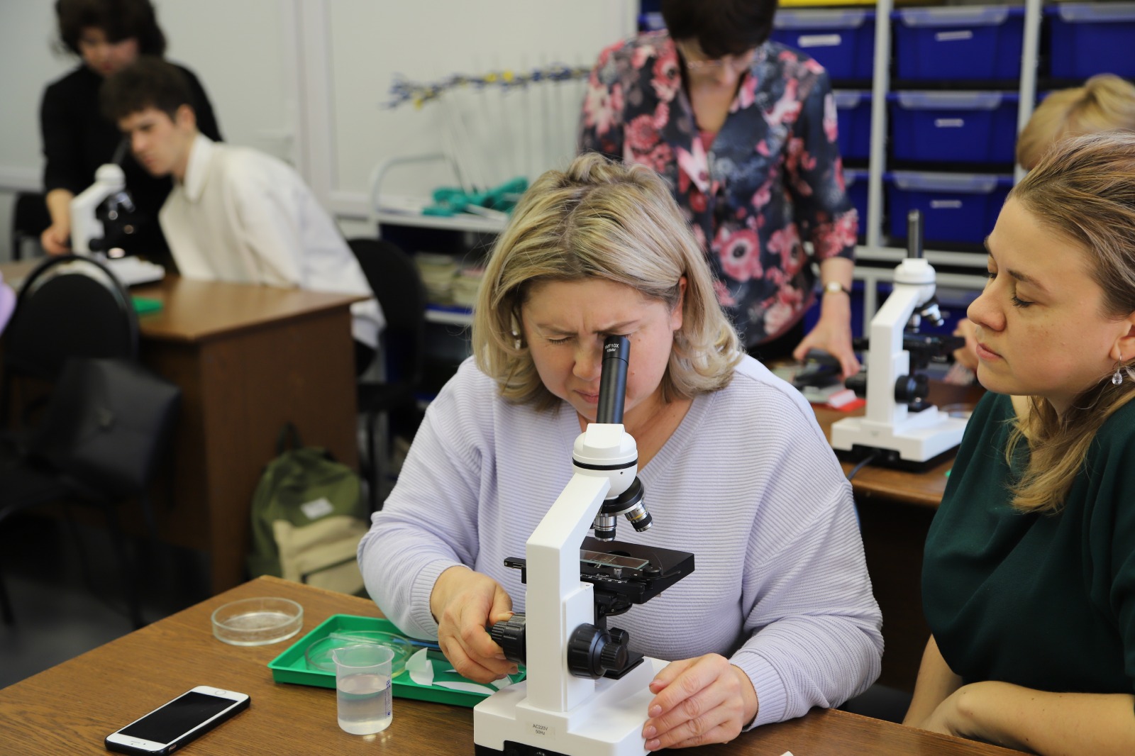 В завершении курса школьники и педагоги посетили естественно-географический факультет и познакомились с работой ученых-альгологов. Практические занятия по изучению микроскопических водорослей и цианобактерий для них провели доктор биологических наук, заведующий кафедрой биоэкологии и биологического образования Наталья Суханова и доктор биологических наук, руководитель Научно-исследовательской лаборатории молекулярной систематики фототрофных микроорганизмов им. Л.С. Хайбуллиной Лира Гайсина .