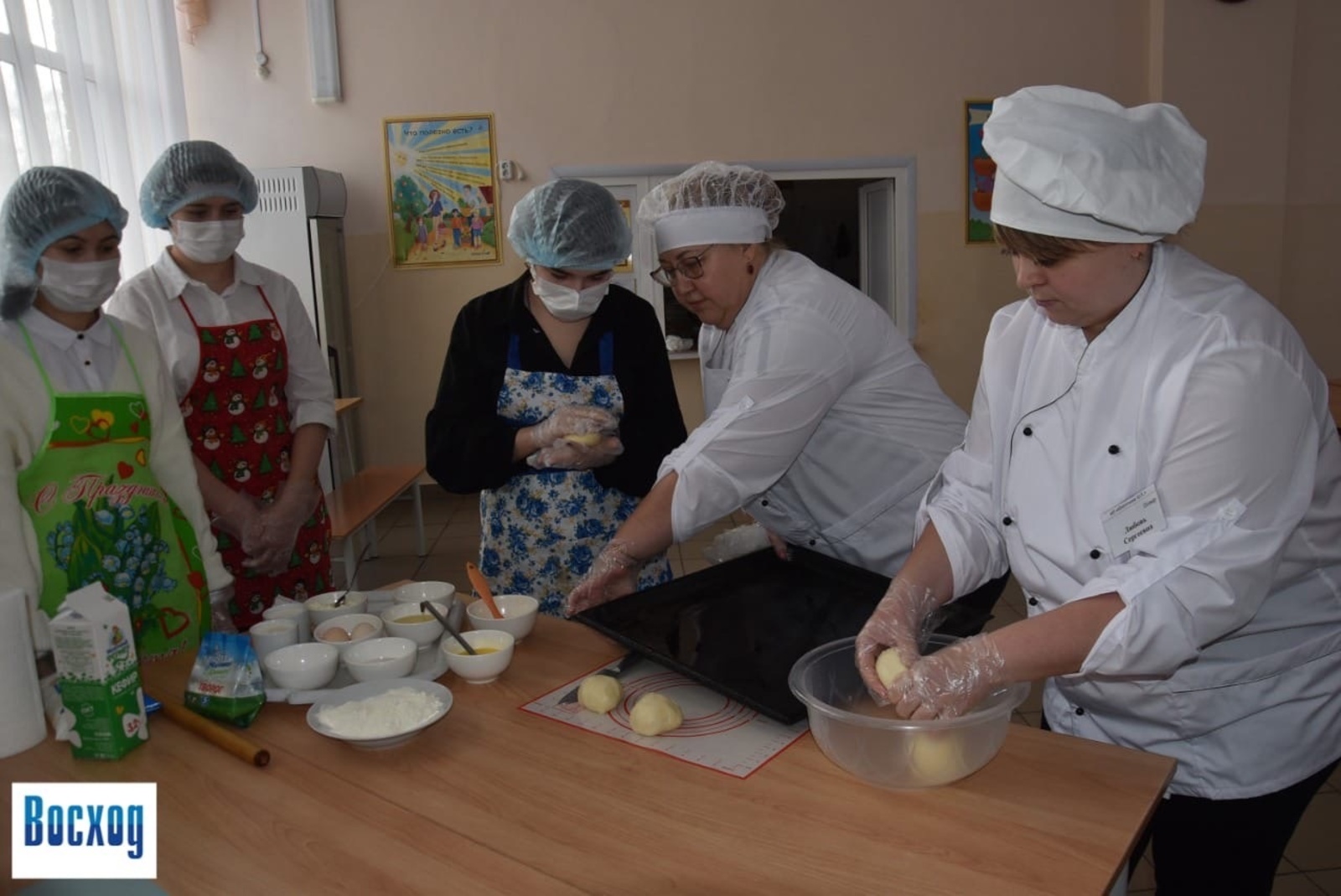 В школе № 3 ученицы 8 классов готовили национальную выпечку русской и башкирской кухни — кыстыбы и ватрушки с творогом. Им помогали учитель технологии и повара школьной столовой. Девочкам подробно рассказали, как замешивается тесто, зачем нужно отправлять его на расстойку, чем можно начинить кыстыбычки. Повара испекли изделия в печке столовой и угостили результатом труда участниц флешмоба. В каждой школе ученики готовили разные блюда.