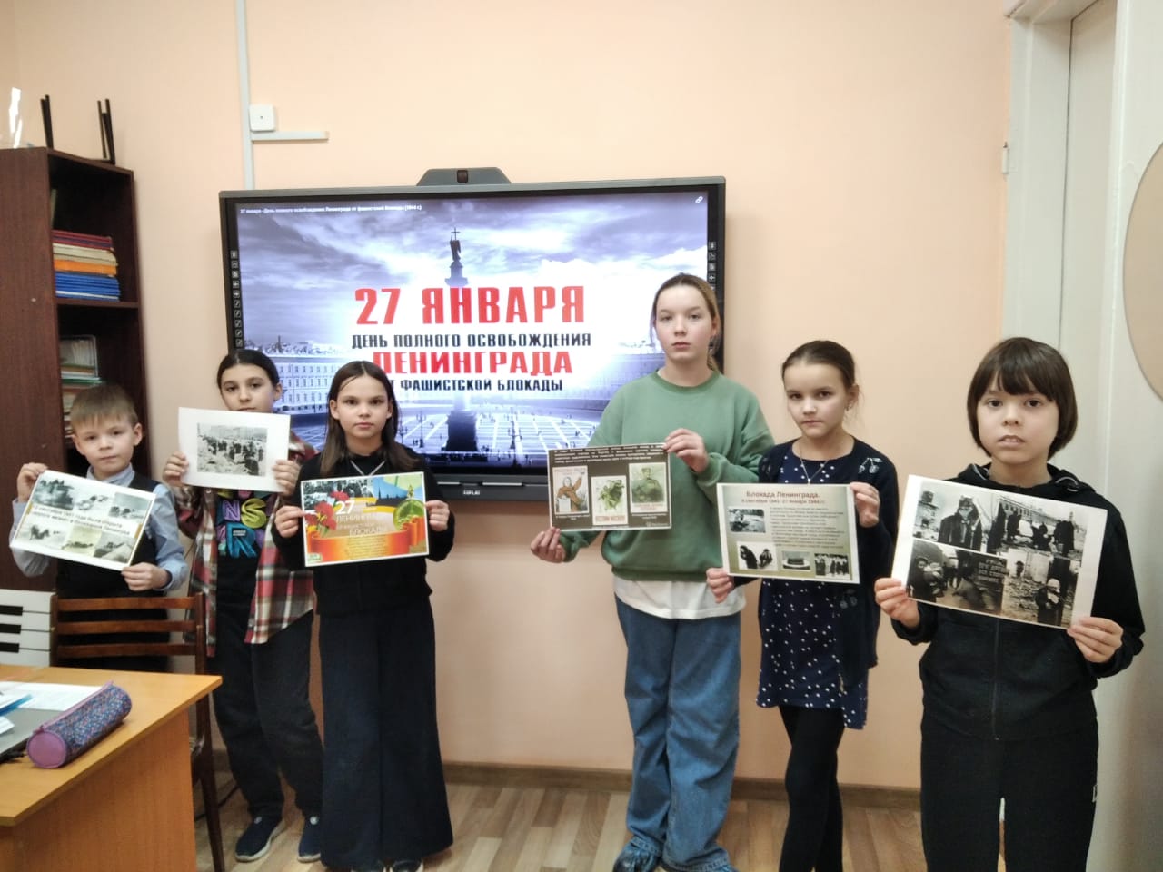 Вниманию учеников была представлена презентация «Дети блокадного Ленинграда». Состоялась демонстрация фильма о блокадном Ленинграде, что способствовало более успешному раскрытию материала. Благодаря современной интерактивной доске, приобретенной в рамках реализации национального проекта «Культура» для кабинета теоретических дисциплин музыкальной школы, урок получился еще более интересным познавательным.
