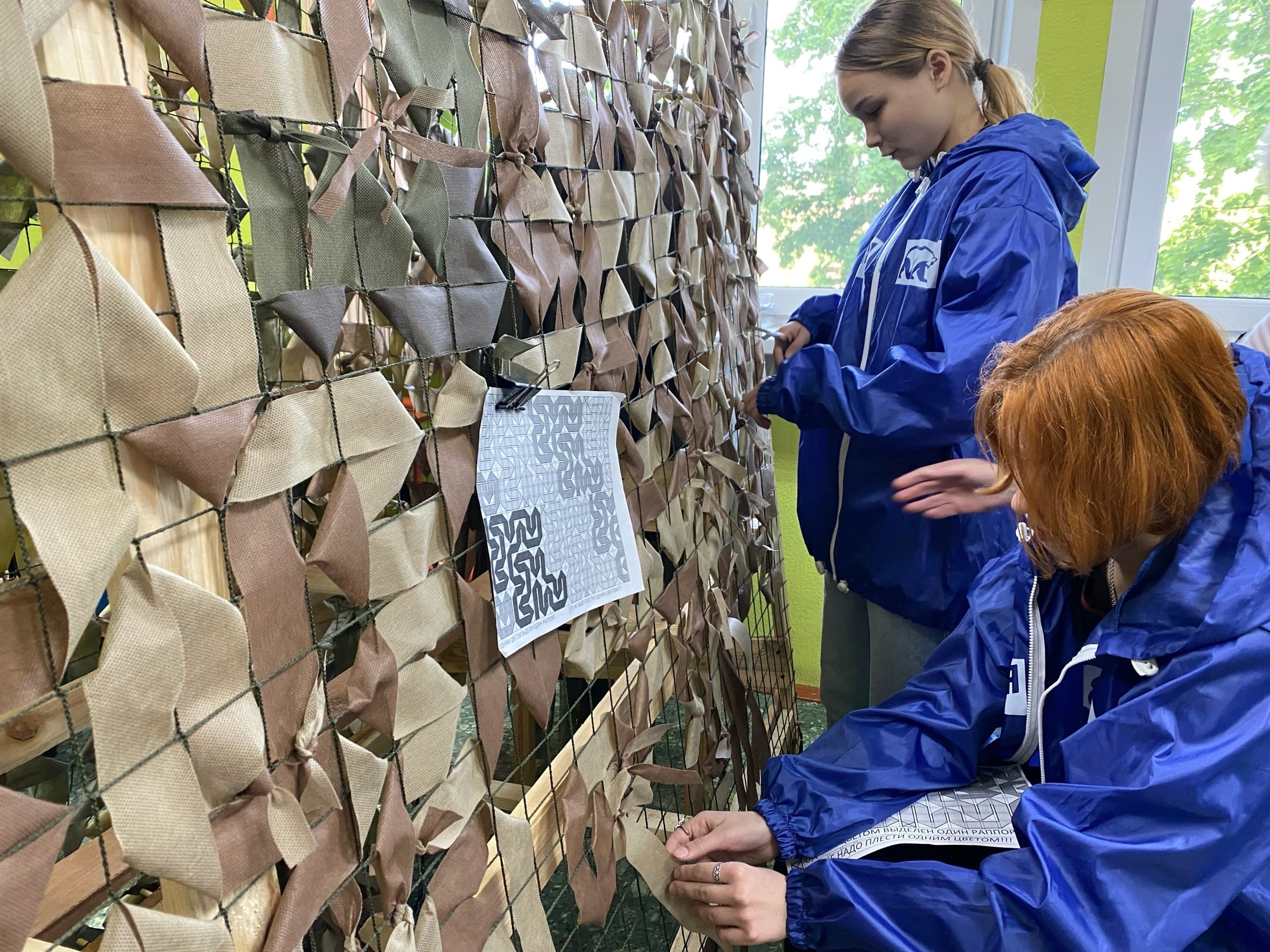 Дёмские активисты «Молодой Гвардии» изготавливают маскировочные сети для участников специальной военной операции.