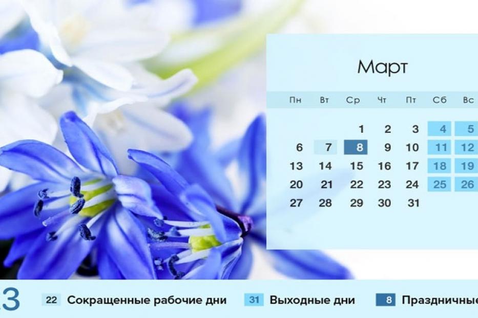 В марте нас ждет выходной в середине недели: 8-е число приходится на среду.