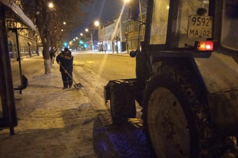 В ночную смену заступили 25 единиц специализированной техники Службы по благоустройству Ленинского района г. Уфы.
