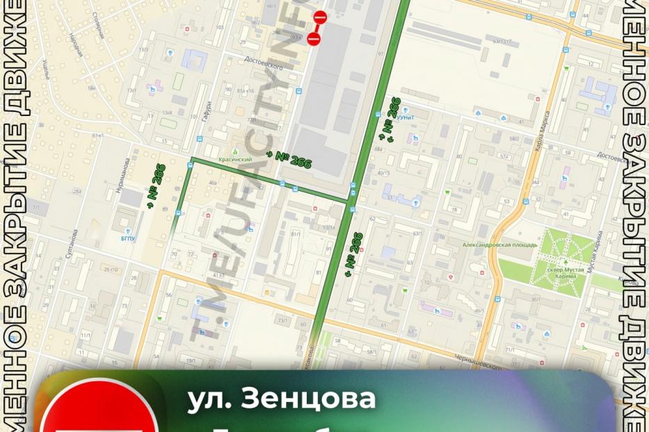 В связи со строительством газопровода вводится частичное ограничение движения транспорта по улице Зенцова вблизи дома № 93.