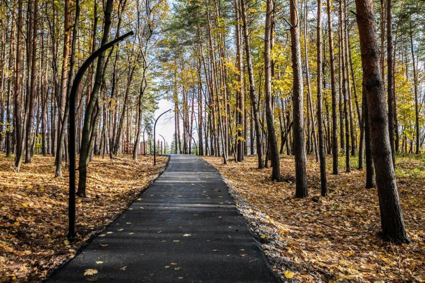 Тропы протяженностью 4,2 км проходят рядом с санаторием «Радуга» и ведут в сторону Президент Отеля. Проектом предусмотрено приведение в порядок 3,7 гектаров территории, обустройство спортивной и смотровой площадок со спуском к реке Уфе. Вдоль велопешеходных дорожек уже смонтировали светильники.
