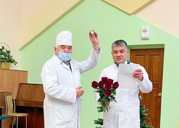 Главный врач Мурад Авзалов вручил Рашиту Абдулловичу знак «Заслуженный работник РКБ им. Г.Г. Куватова» и зачитал Правительственную телеграмму с поздравлениями от главы Республики Башкортостан Радия Хабирова
