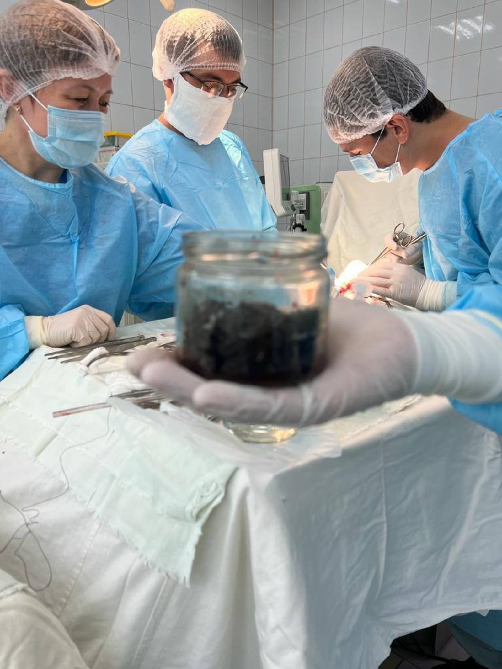 Во время рентгенологического исследования в подвздошной области у него было обнаружено инородное тело, которое растянуло желудок и опустило его на 20 сантиметров. Специалисты приняли решение о хирургическом вмешательстве. Операция длилась 2,5 часа, из пациента достали в целом 300 граммов магнитных частиц.