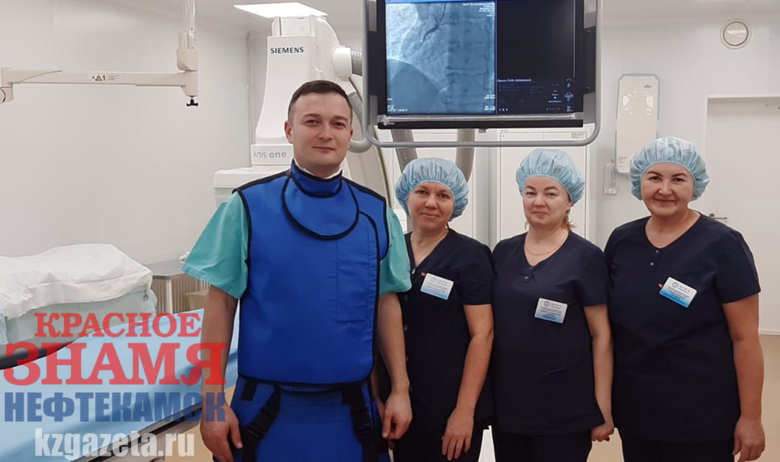 Под рентген-контролем идёт эндоваскулярная операция на сердце: без разрезов и наркоза.Фото:Миляуша Сиразетдинова, «КЗ». Операция по спасению жизниВо время нашего разговора Ренату Марисовичу Бикташеву позвонили. Оказалось, скорая помощь привезла больного с инфарктом. Выяснилось, мужчина 1959 года рождения ехал за рулем, когда почувствовал сильную боль за грудиной. Вызвал скорую. В приемном отделении ему сделали кардиограмму, провели срочную диагностику и констатировали обширный инфаркт миокарда. В срочном порядке медики приемного отделения связались с Ренатом Марисовичем, и вот уже пациент лежит на операционном столе в отделении рентгенохирургических методов диагностики и лечения. Мне же представился редкий случай воочию увидеть, как на уровне передовых технологий работают наши сосудистые хирурги – первоклассные профессионалы. Мне разрешили присутствовать в предоперационной, за стеклом которой можно видеть весь ход операции. Чувствую себя так, будто попала в святая святых. Для оперирующей же бригады это рядовая операция, одна из тысячи. Ангиохирург оперирует под рентген-контролем, поэтому работает в защитном фартуке весом 8-10 килограммов. Надевается защита и на пациента. Врачи отмечают, что в современных аппаратах лучевая нагрузка сведена до минимума и по дозе излучение сопоставимо с обычным рентген-обследованием. Разумеется, все зависит от продолжительности операции. Вся операционная бригада работает как единый отлаженный механизм: каждый хорошо знает свою область задач. Сосудистый хирург и операционные медсестры понимают друг друга с полуслова. Операция проходит под местной анестезией, пациент находится в полном сознании, отвечает на вопросы врача.