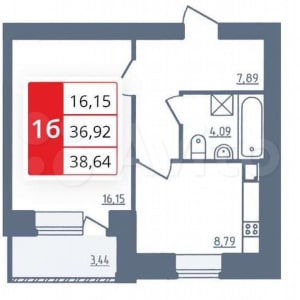 - Общая площадь: 38.6 м²