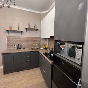 В квартире сделан очень хороший ремонт- дизайнерский.