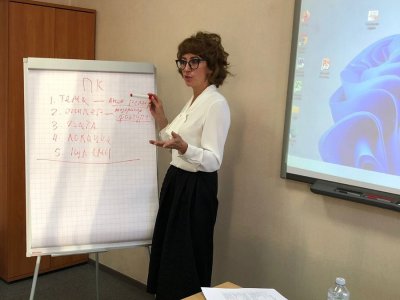 Зухра Фаргатовна поделилась практическим опытом - какую базу знаний надо формировать пресс-службам, объяснила основные принципы работы со СМИ.